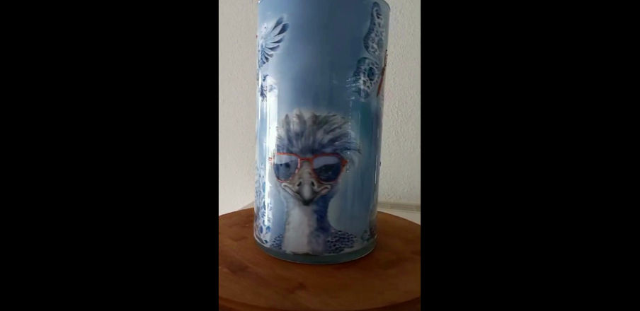 Omdat de binnenkant van de vaas is bewerkt met servetten/afbeeldingen en verf, kan de vaas niet meer gebruikt worden als vaas voor verse bloemen; dit kan nog wel door er een kleinere maat vaas in te zetten. Deze vaas een eyecatcher met droogbloemen of zijdebloemen erin. Ook kan de vaas als windlicht dienen.